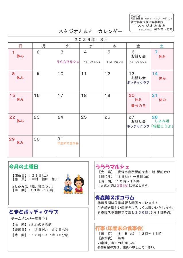 スタジオとまと予定表